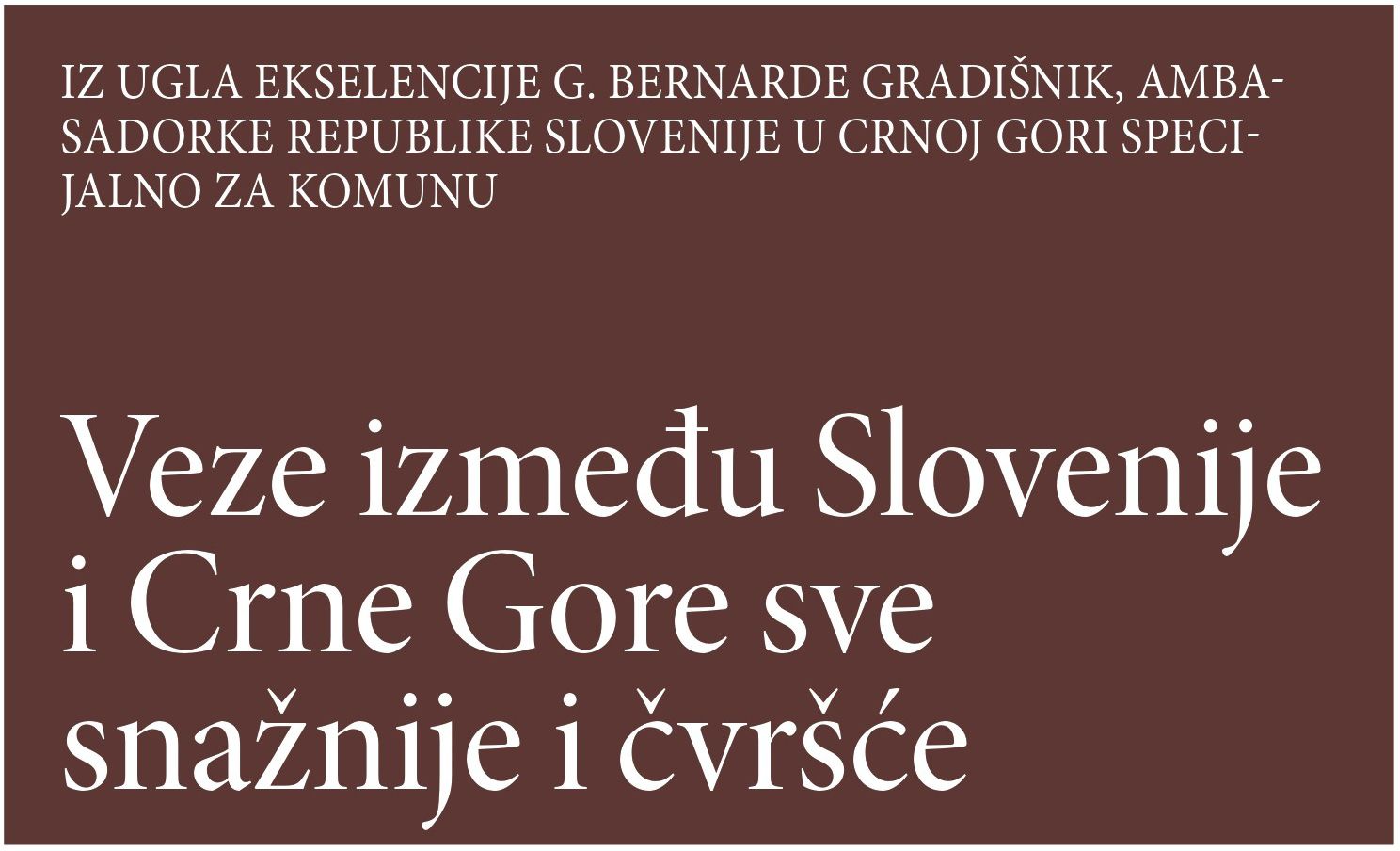 Prije nego što napišem bilo što, kao ambasadorka Republike Slovenije u Crnoj Gori moram utvrditi da su međudržavni odnosi između Crne Gore i Slovenije odlični. Mi smo kao dobre komšije, zapravo nam je čak i bolje, između neposrednih komšija kod kojih uvijek postoje neka granična pitanja i istorijske zamjerke, a između nas toga nema.